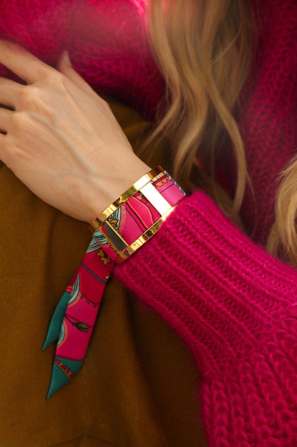 The Addresse Inconnue-Pink/Blue Ribbon is a striking fusion of vivid pinks, bold reds, and refreshing turquoise accents. Its dynamic patterns create a sense of movement and artistic flair, making it a captivating accessory on its own. Expressive and daring, this ribbon embodies modern elegance with a touch of playfulness—ideal for those who love to infuse their look with vibrant personality.