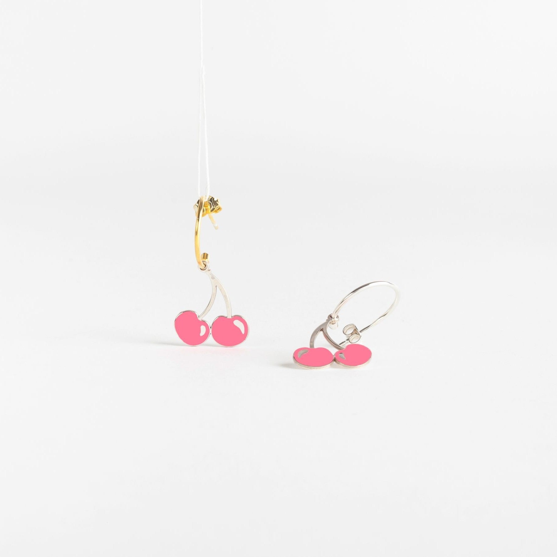 The lucky charms is our brand new pendants earrings collection for 2025. The collection has 14 different designs. Each one represents a unique symbol of reality in an abstract way. The collection is made entirely of silver 925 and the colors are ceramic. The hoop is available at 2 options, silver or silver with gold plating.