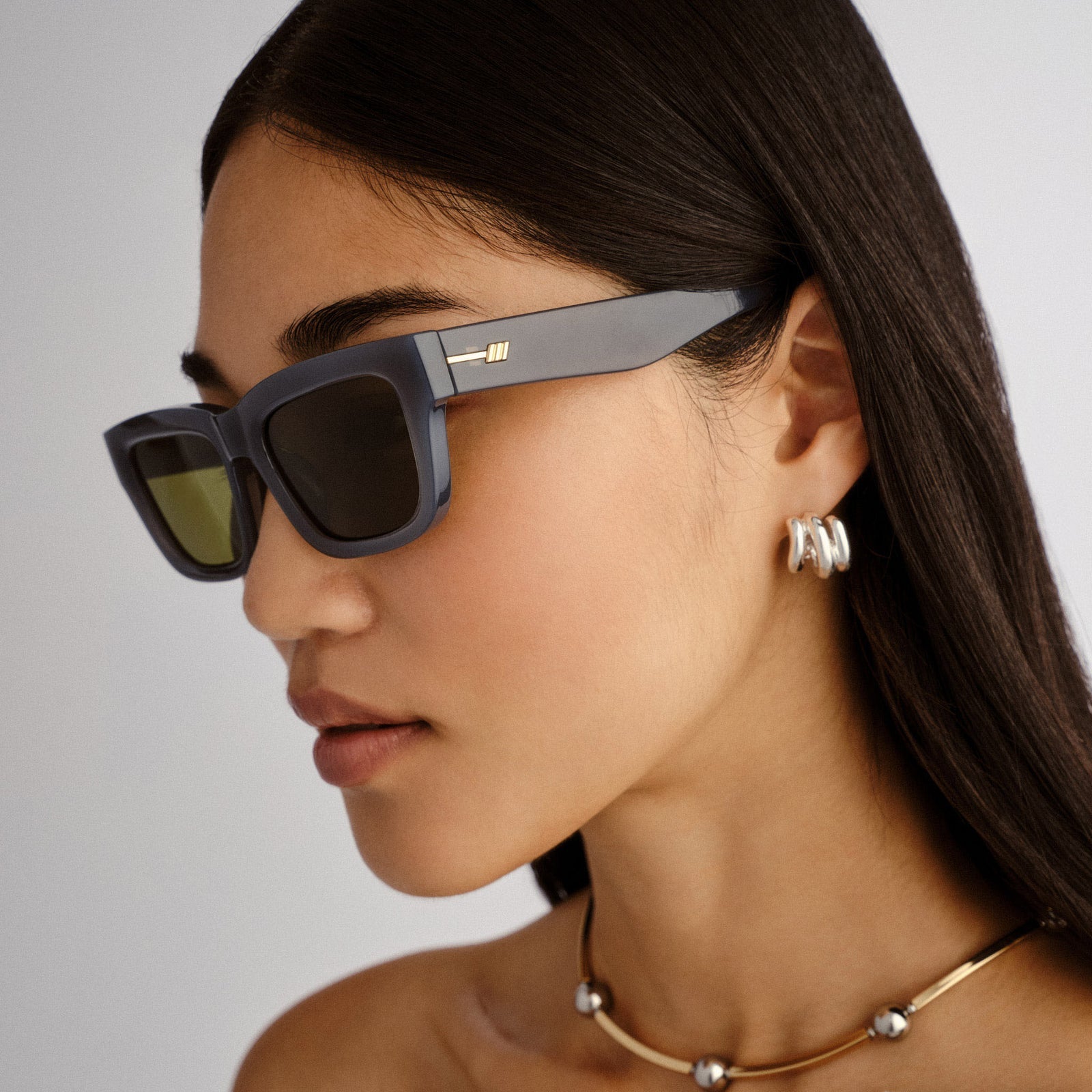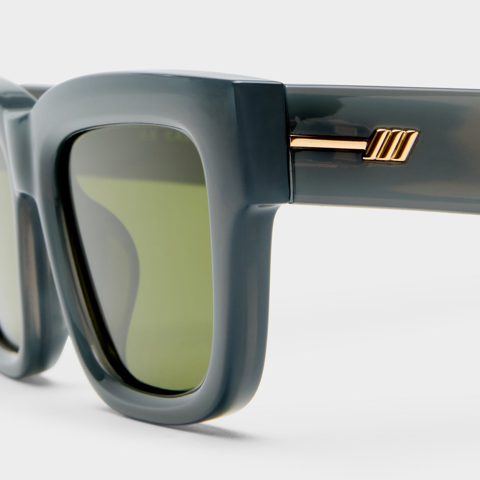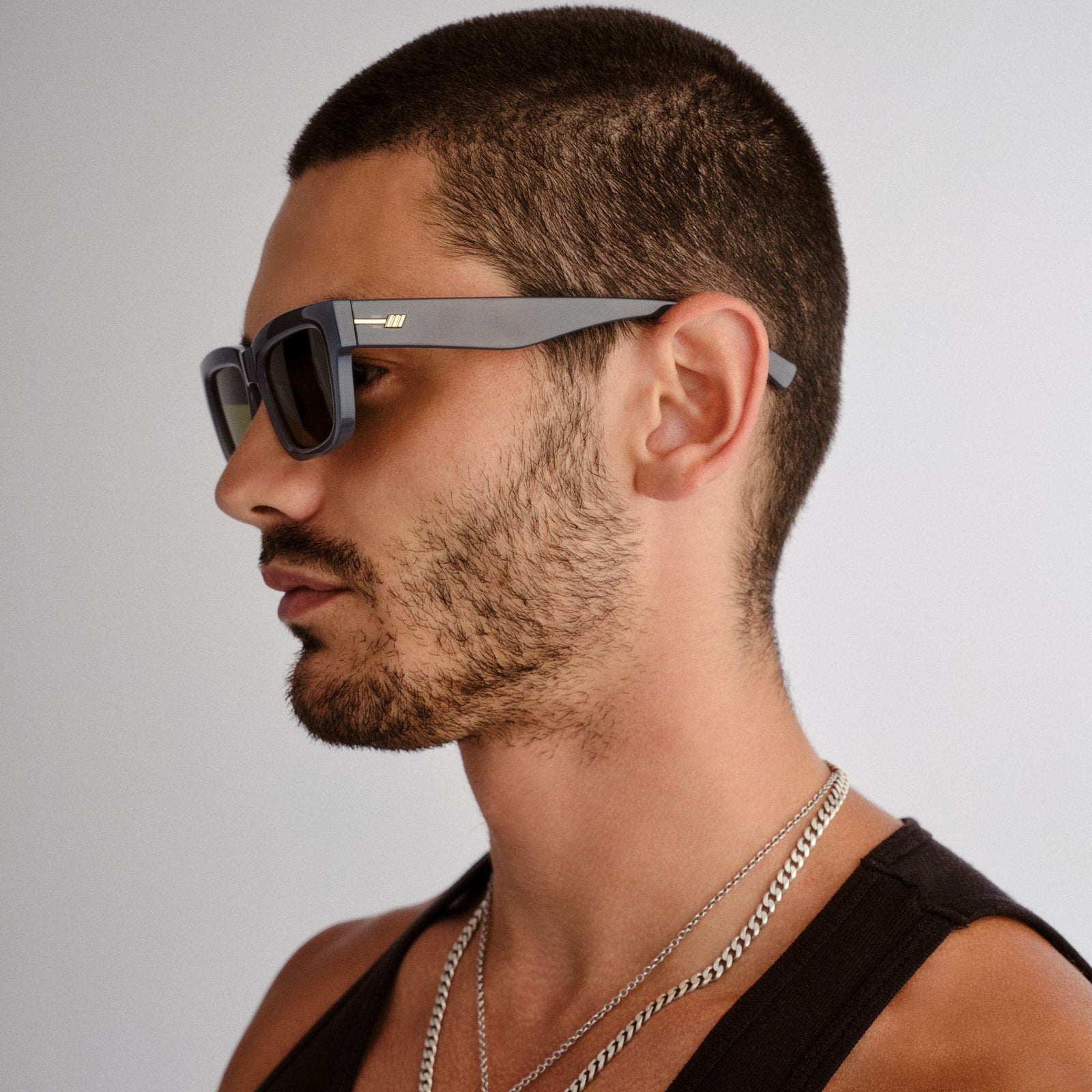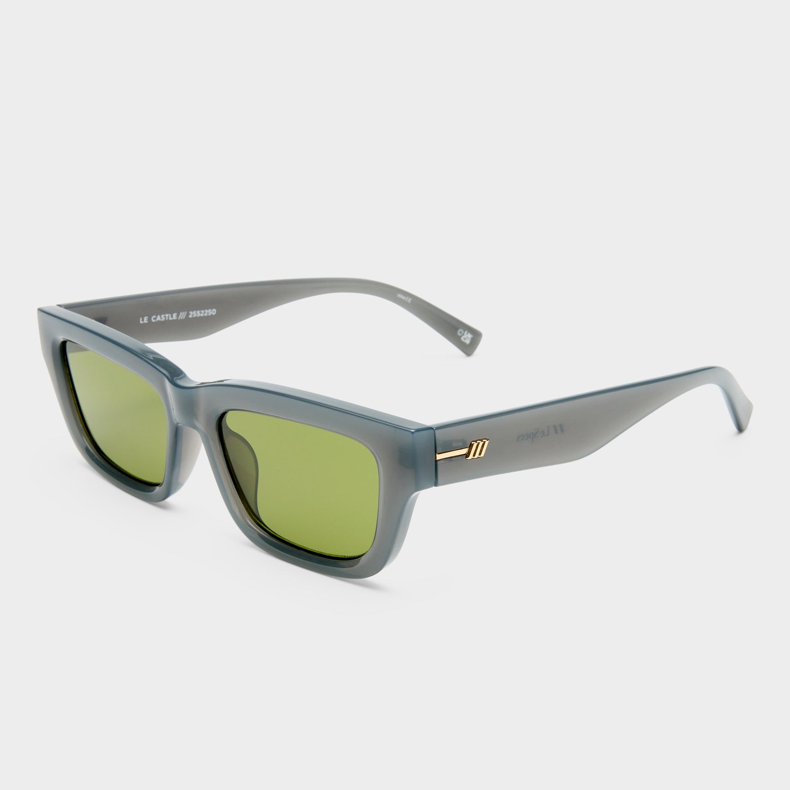 LE CASTLE reimagines a classic rectangular frame with a bold, modern edge. Showcasing our classic horizontal pin stripe flagstripehardware, this frame features thick temples for an effortless staple.