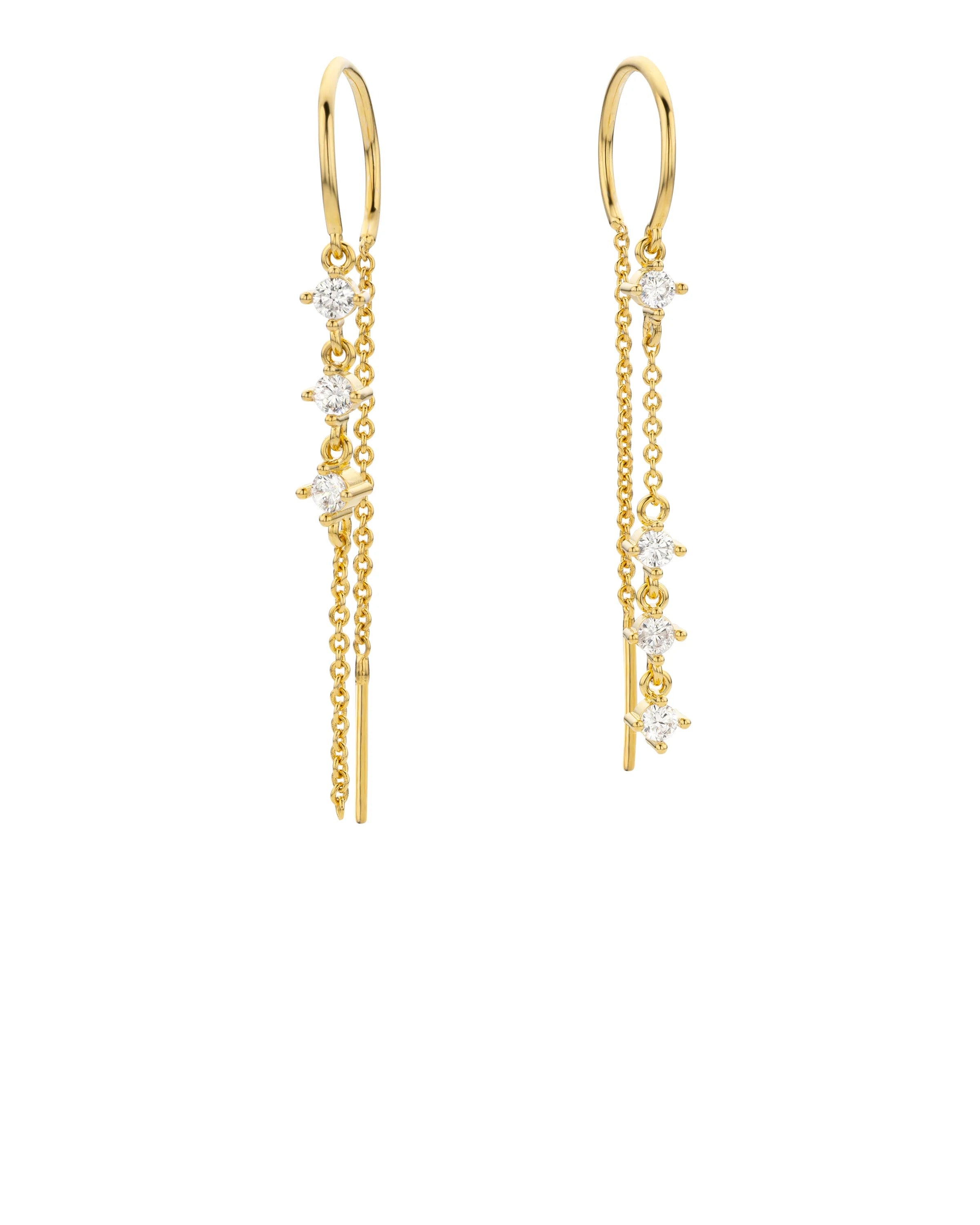 The RIALTO asymmetrical earrings from MYA—BAY pay homage to the iconic bridge of Venice. Inspired by its architectural elegance, they combine a delicate line with a fine dangling chain adorned with white zircons, creating an ultra-refined interplay of movement and light. A chic and subtle asymmetry, perfect for illuminating the ear with sophistication.