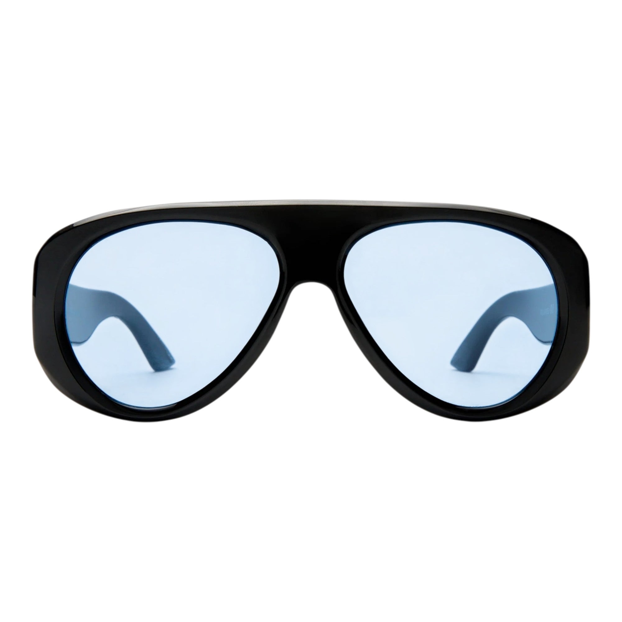 Bold and aerodynamic, DREAM BOAT flat top sunglasses is designed with an oversized aviator silhouette that makes a high-impact statement. The sweeping brow line and contoured frame create a sculptural fit that feels directional yet wearable. Balanced with wide temples, this shape offers a sporty edge with horizontal metal hardware extending from front frame through tot temples.