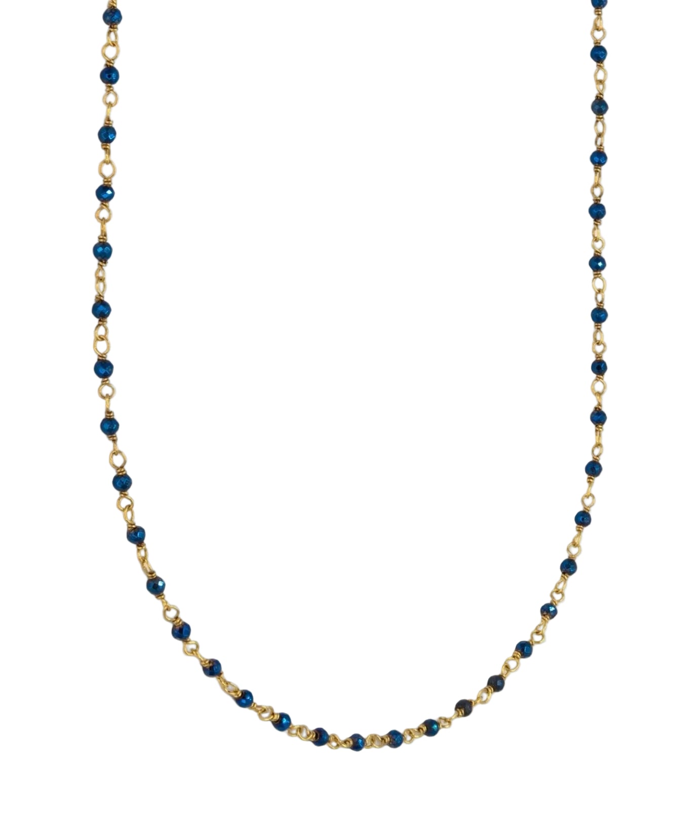 The Black Pyrite India Necklace combines minimalism and intensity. The small, faceted black pyrite stones bring depth and a mysterious sparkle to this 18-karat gold-plated chain (1 micron). Elegant and easy to style, this necklace is a chic essential for any collection.